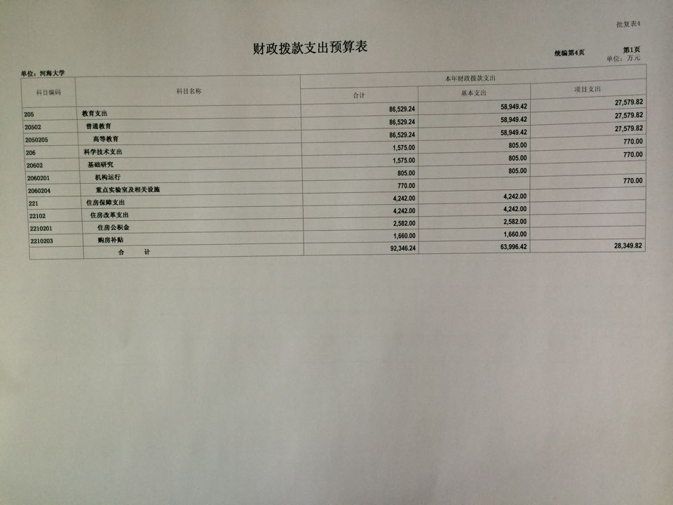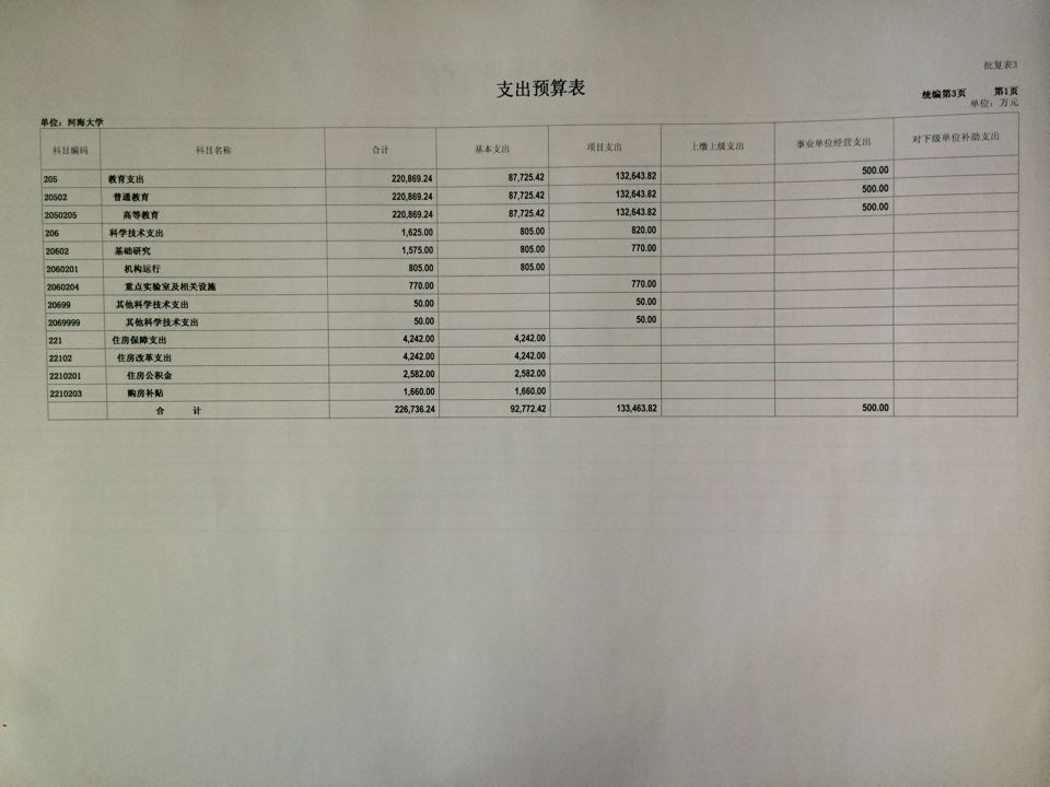 南海娱乐2014年“二下”部门预算已获教育部批复。按照《教育部关于做好高等学校财务信息公开工作的通知》(教财[2012]4号)和《关于做好2014年预算公开工作的通知》(教财司函[2014]162号)的要求,现予公开我校2014年部门预算,包括:《收支预算总表》、《收入预算表》、《支出预算表》、《财政拨款支出预算表》等相关信息。
